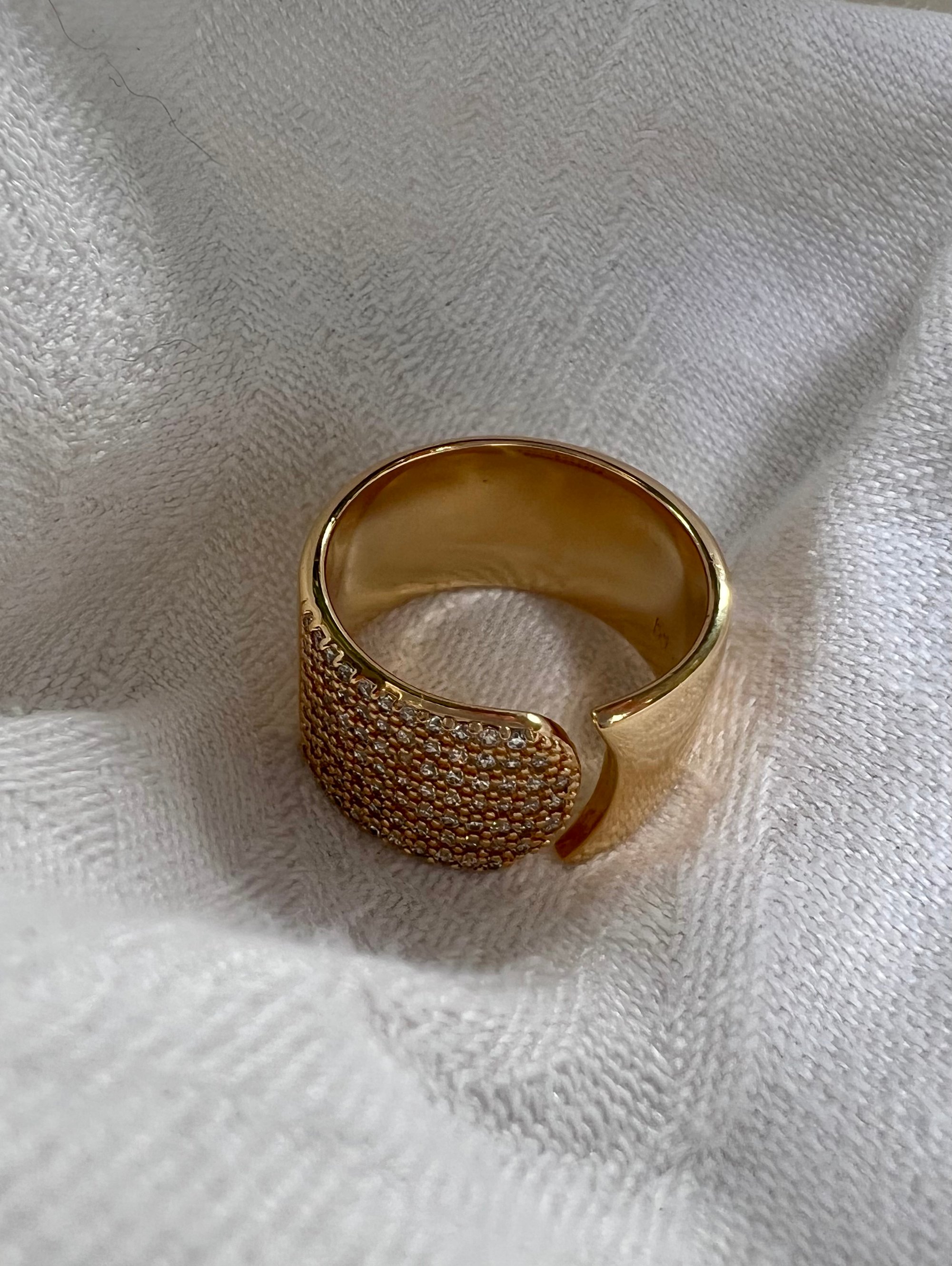Anneau large géométrie en plaque or 3 microns et zircons blancs sertis